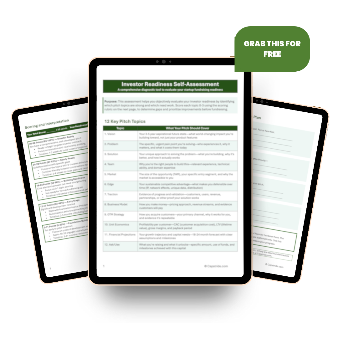 This quick self-assessment helps you diagnose your investor signals across clarity, traction, and credibility — so you don’t waste time pitching before you’re ready.